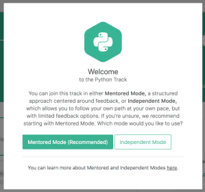 You’ll see a dialog that asks if you want to use Mentored Mode or Independent Mode. Select Mentored Mode if you would like to a more structured experience where others provide feedback. Independent Mode is more of a work-at-your-own-pace model.